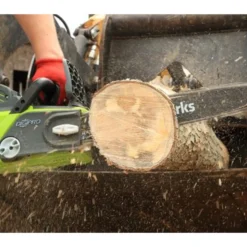 Met de Greenworks G-Max 40 volt accu kettingzaag type 20077 heeft u een zeer krachtige accu kettingzaag. Het grote voordeel van snoerloos zagen is uiteraard geen verlengsnoeren en geen brandstof. Dit laatste betekent geen uitlaatgassen dus ook nog eens milieuvriendelijk zagen.